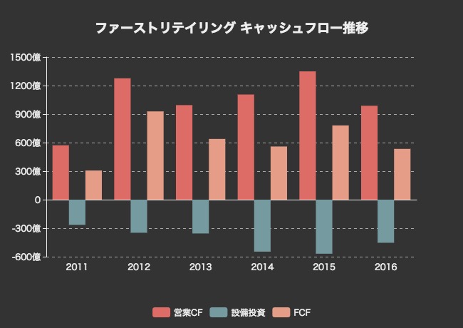 稼ぎ出されるフリーキャッシュフローは概ね300億円から900億円の間で推移しています。