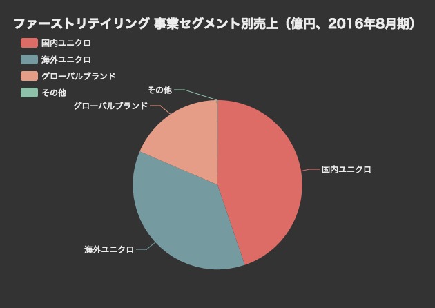 ファーストリテイリングの事業セグメントは、「国内ユニクロ事業」「海外ユニクロ事業」「グローバルブランド事業」の3つに分かれる。