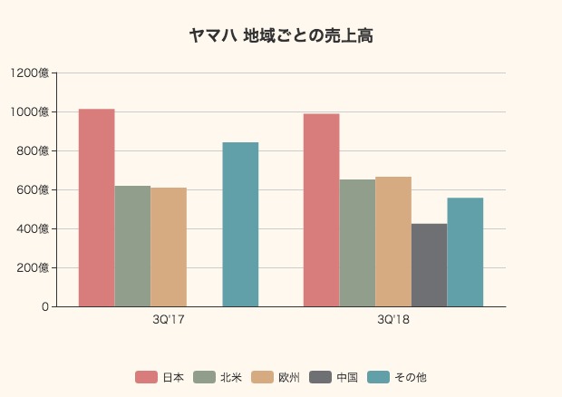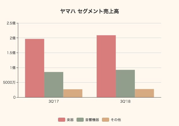 ヤマハも調子良さそうですね。セグメントごとの売上を見てみます。