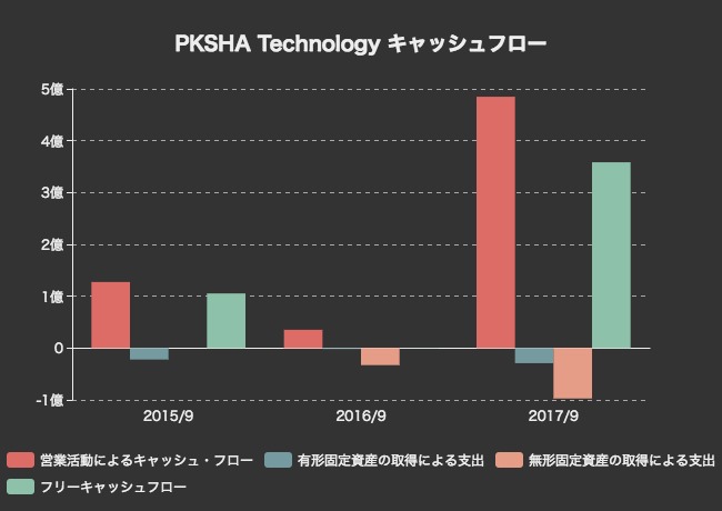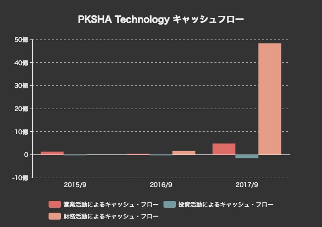 ものすごいグラフになっていますが、これは株式上場によって48億円の現金を市場から調達したためです。