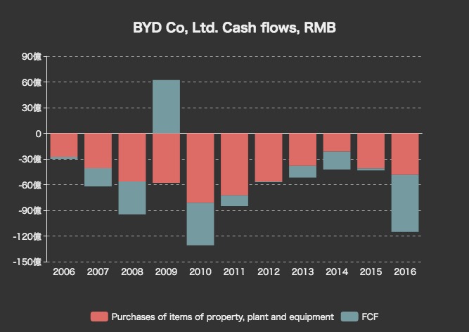 これを超える営業キャッシュフローを稼がなくては、BYDのフリーキャッシュフローがプラスになることはありません。