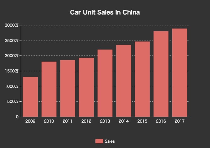 2017年には2888万台と、さらに2倍以上に増加し、自動車メーカーにとって世界最大の市場となっています。